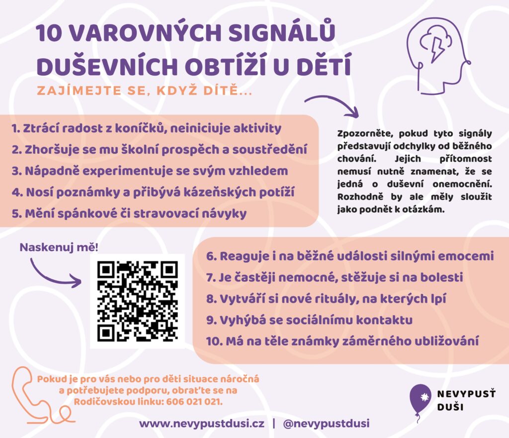 Stránka Nevypusť duši sdílela příspěvek, který se věnuje varovným signálům duševních obtíží u dětí.