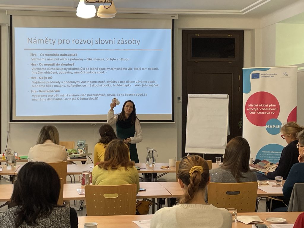Na začátku prosince se konal seminář pro pedagogy mateřských škol s názvem Logopedie pro MŠ. Seminář byl rozdělen na dvě části. První část nabídla náhled na vývoj řeči z mnoha úhlů pohledu. Druhá část byla věnována dechovým cvičením.