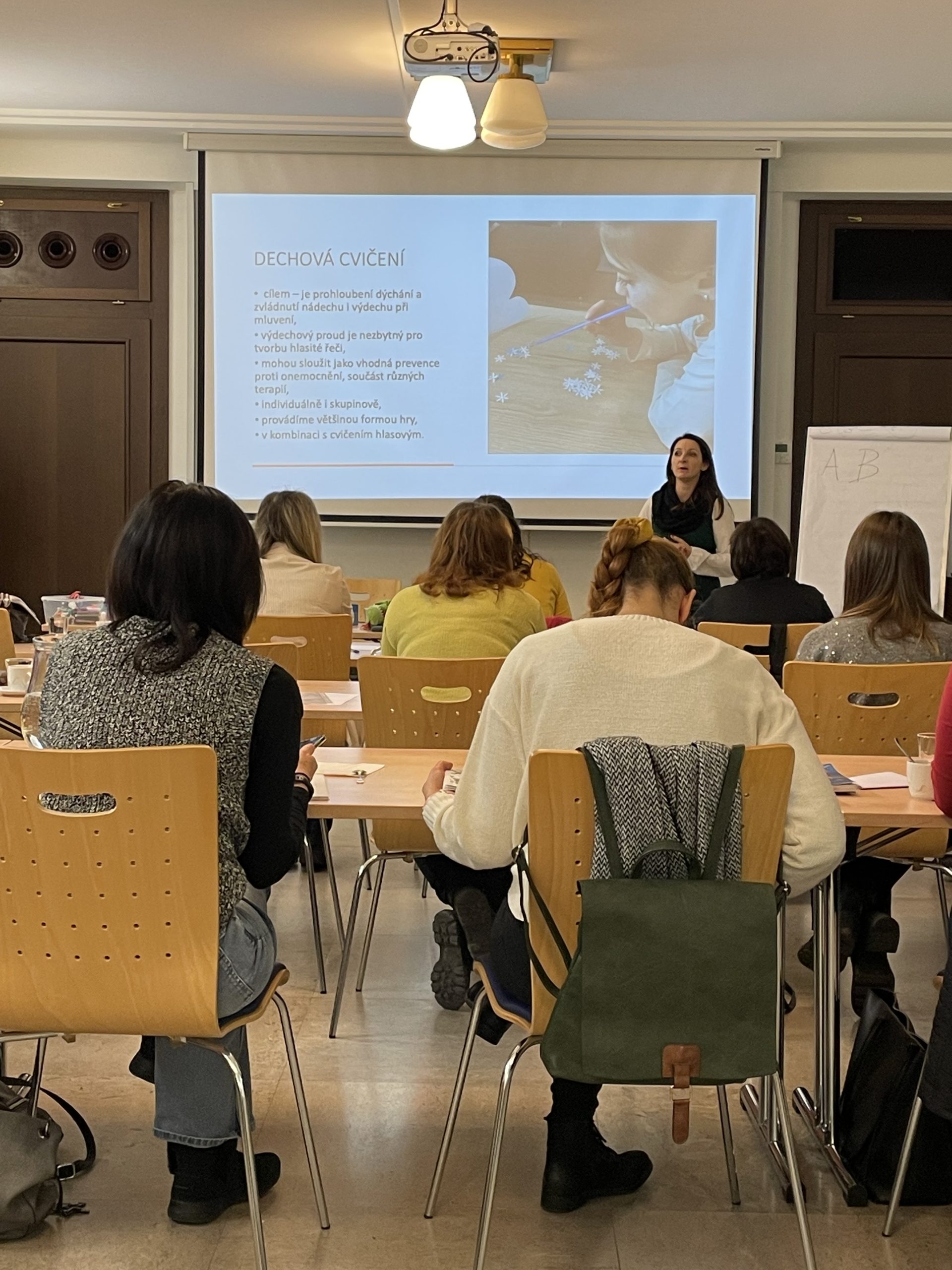 Seminář poskytl účastníkům praktické ukázky a náměty, jak na dechová cvičení s běžnými pomůckami, a také objasnil, proč je výhodné dechová cvičení u dětí pravidelně zařazovat. Účastníci se dozvěděli, co je to správná technika dýchání, proč ji používat a jak rozvíjet řeč u dětí s ohledem na jejich věk a dovednosti. Lektorka také vysvětlila, kdy je čas vyhledat odbornou pomoc a na jakého odborníka se mohou rodiče či pedagogové obrátit.