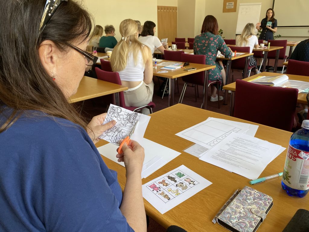 První setkání se zaměřilo na narušené komunikační schopnosti (NKS) a důležitost oromotoriky, tedy cvičení mluvních orgánů. Pedagogové se dozvěděli, jak včas rozpoznat problémy s výslovností a co všechno mohou dělat, aby dětem pomohli. A nebylo to jen o teorii – praktické aktivity, které mohou rovnou zapojit do výuky, byly také součástí semináře. Účastnice si vyzkoušely i cvičení na jemnou motoriku, které pomohou dětem mluvit jasněji a správněji.