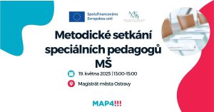 Dne 19. května se uskuteční Metodické setkání speciálních pedagogů mateřských škol, které se zaměří na využití nových přístupů a metod v oblasti inkluzivního vzdělávání. Akce se bude konat na Magistrátu města Ostravy a je určena speciálním pedagogům a vedení mateřských škol. Vítáni jsou také zástupci speciálních a soukromých škol.