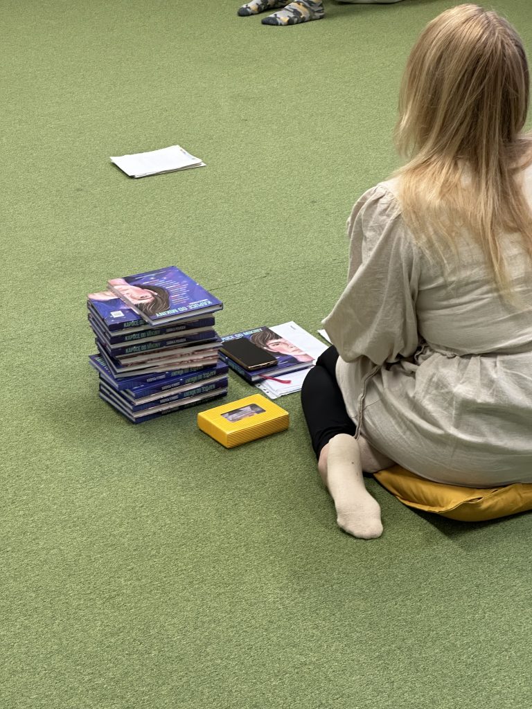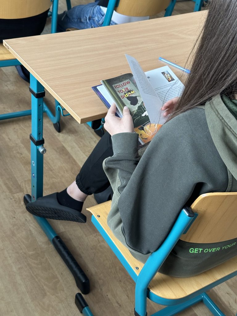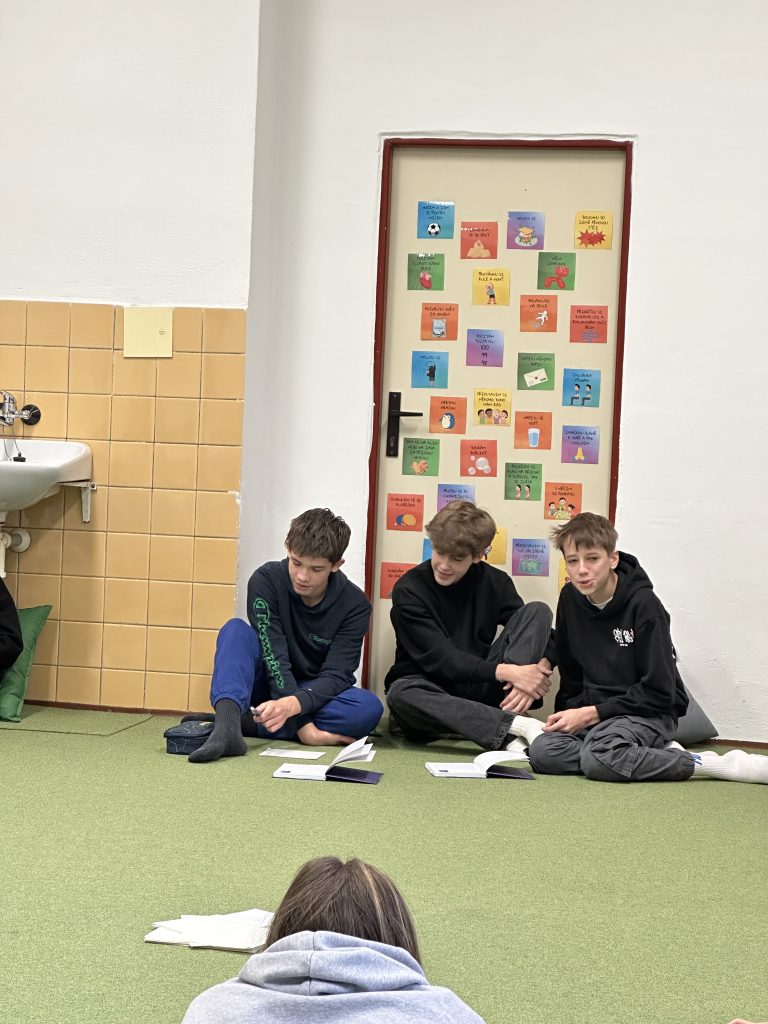 S žáky probíhá čtenářská dílna ke konkrétní povídce ze sbírky “Kapuce od mikiny“, která obsahuje originální povídky od patnácti renomovaných českých autorů. Tito spisovatelé se ponořili do světa náctiletých a vytvořili příběhy na témata, která jsou pro mládež aktuální a často i tabuizovaná. Povídky se zabývají například šikanou, hendikepy, závislostmi, materialismem či předsudky, ale také čestností, vnitřní svobodou, zodpovědností, empatií a laskavostí.