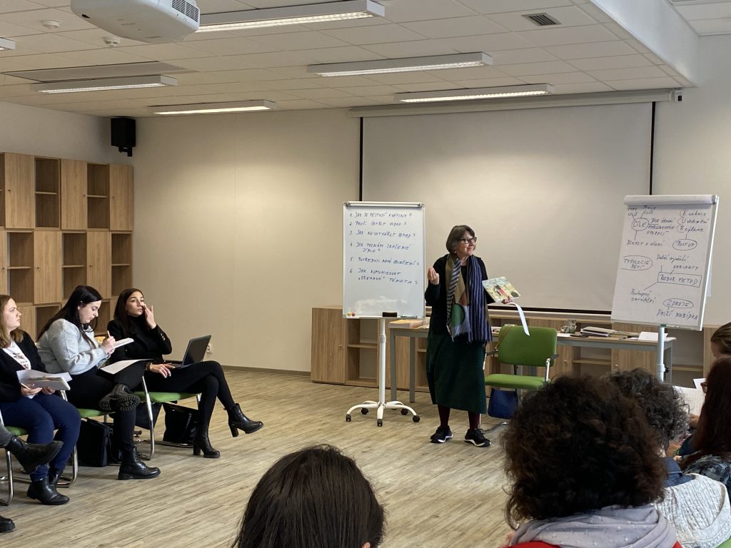 Lektorkou kurzu byla MgA. Nina Rutová, zkušená pedagožka a lektorka s dlouholetou praxí v oblasti rozvoje čtenářské gramotnosti a podpory aktivního učení. Pod jejím vedením se skupina 20 pedagožek z ostravských základních škol ponořila do principů metody RWCT (Reading and Writing for Critical Thinking), která klade důraz na rozvoj samostatného myšlení, práci s textem a podporu otevřeného dialogu ve třídě.