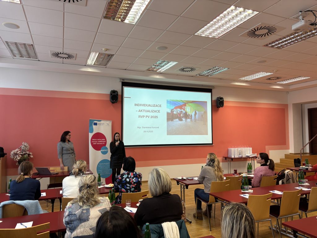 Úvodního slova se ujala Mgr. Iva Májková, která představila nejnovější informace o projektu MAP ORP Ostrava IV a jeho plánovaných aktivitách. Následně vystoupila Mgr. Stanislava Korcová, ředitelka MŠ Varenská, která se zaměřila na význam individualizace ve vzdělávání a vysvětlila, proč je klíčová v kontextu současných výzev, se kterými se mateřské školy setkávají.