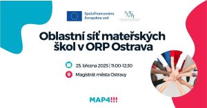 Rádi bychom Vás pozvali na společné setkání Oblastní sítě mateřských škol v ORP Ostrava, které se uskuteční 25. března 2025 od 11:00 do 12:30 hodin na Magistrátu města Ostravy.