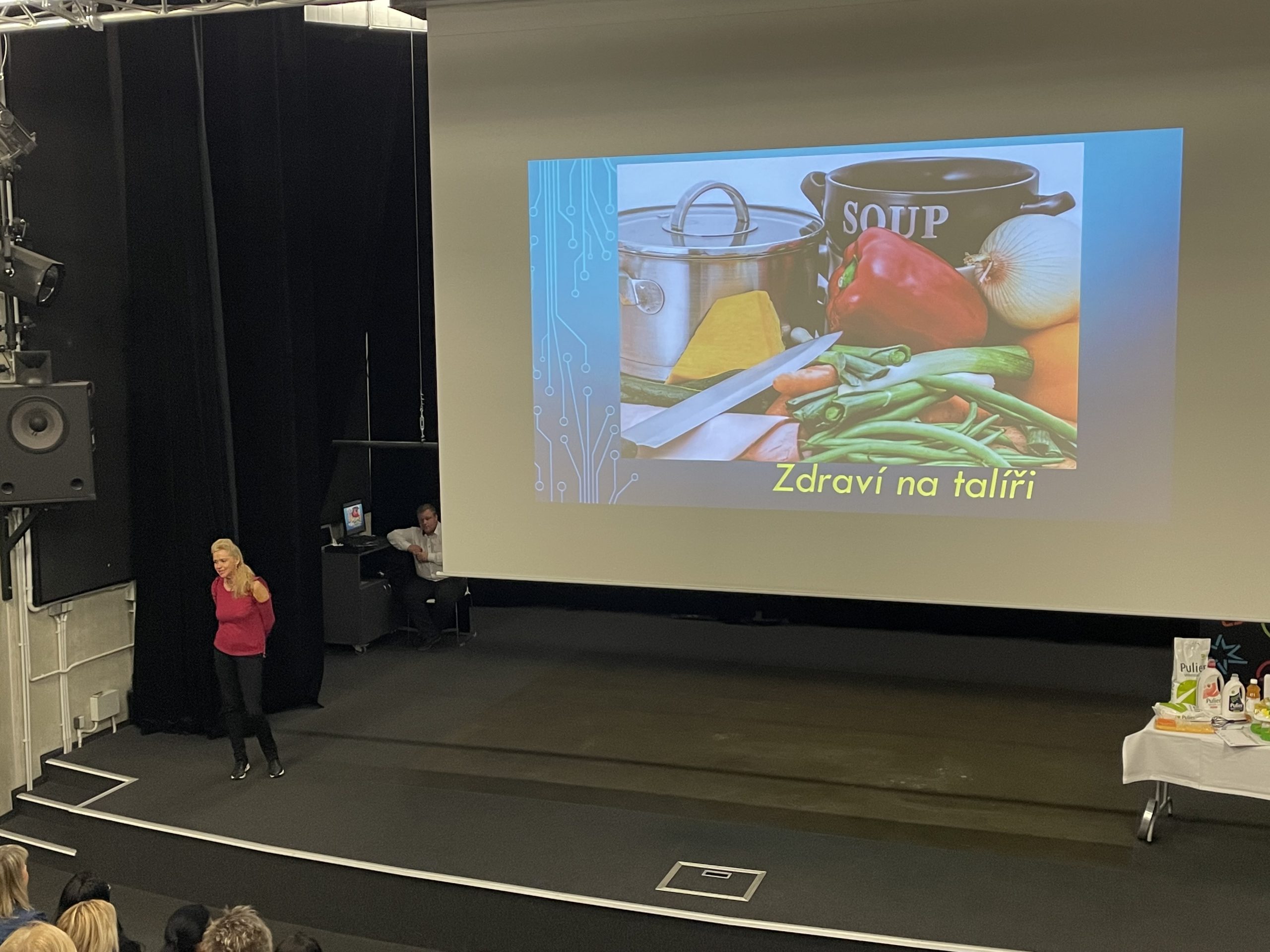 Druhou vystupující byla zástupkyně školní kuchyně MŠ Hornická paní Inka Gondková, která hovořila o přípravě zdravých svačinových pomazánek, vlivu využívaných potravin na detoxikaci dětí, ale i o využití pečené zeleniny při přípravě zdravých pomazánek.
