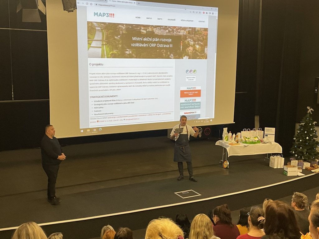 Závěrem jednání vystoupila zástupkyně Magistrátu města Ostravy, paní Mirka Segar, která hovořila o projektu statutárního města Ostravy „Fajne školní bistro“, jeho plánovaném rozšíření pro rok 2023 také pro mateřské školy, spolupráci známých a kvalitních kuchařů na tomto projektu a možném přínosu pro mateřské školy, které o zapojení do tohoto projektu města projeví zájem.