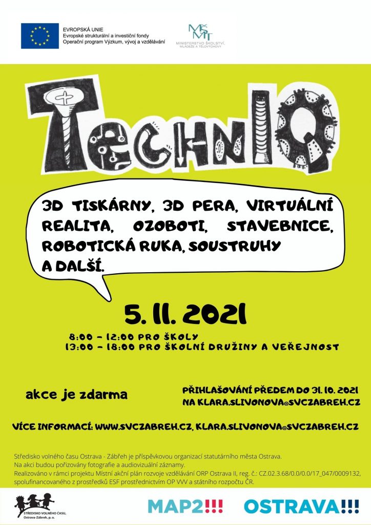 MAP ORP Ostrava II ve spolupráci se Střediskem volného času Ostrava – Zábřeh, příspěvková organizace, pořádá projektový den TechnIQ.